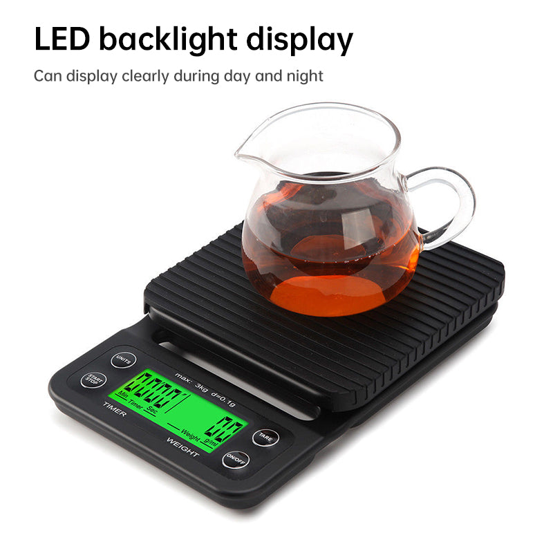 Brew the perfect cup every time with this Digital Kitchen Coffee Scale featuring a high-precision sensor and built-in timer. With a 3kg capacity and 0.1g accuracy, it offers reliable measurements for coffee, baking, and other kitchen needs. Crafted from durable ABS engineering plastic, the scale boasts a clear LCD display with an optional blue or green backlight for easy reading in any lighting.